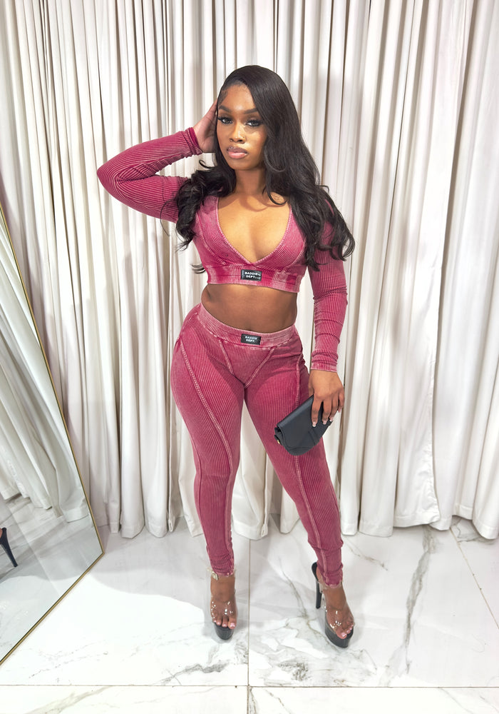 Body Language Ribbed Set Burgundy