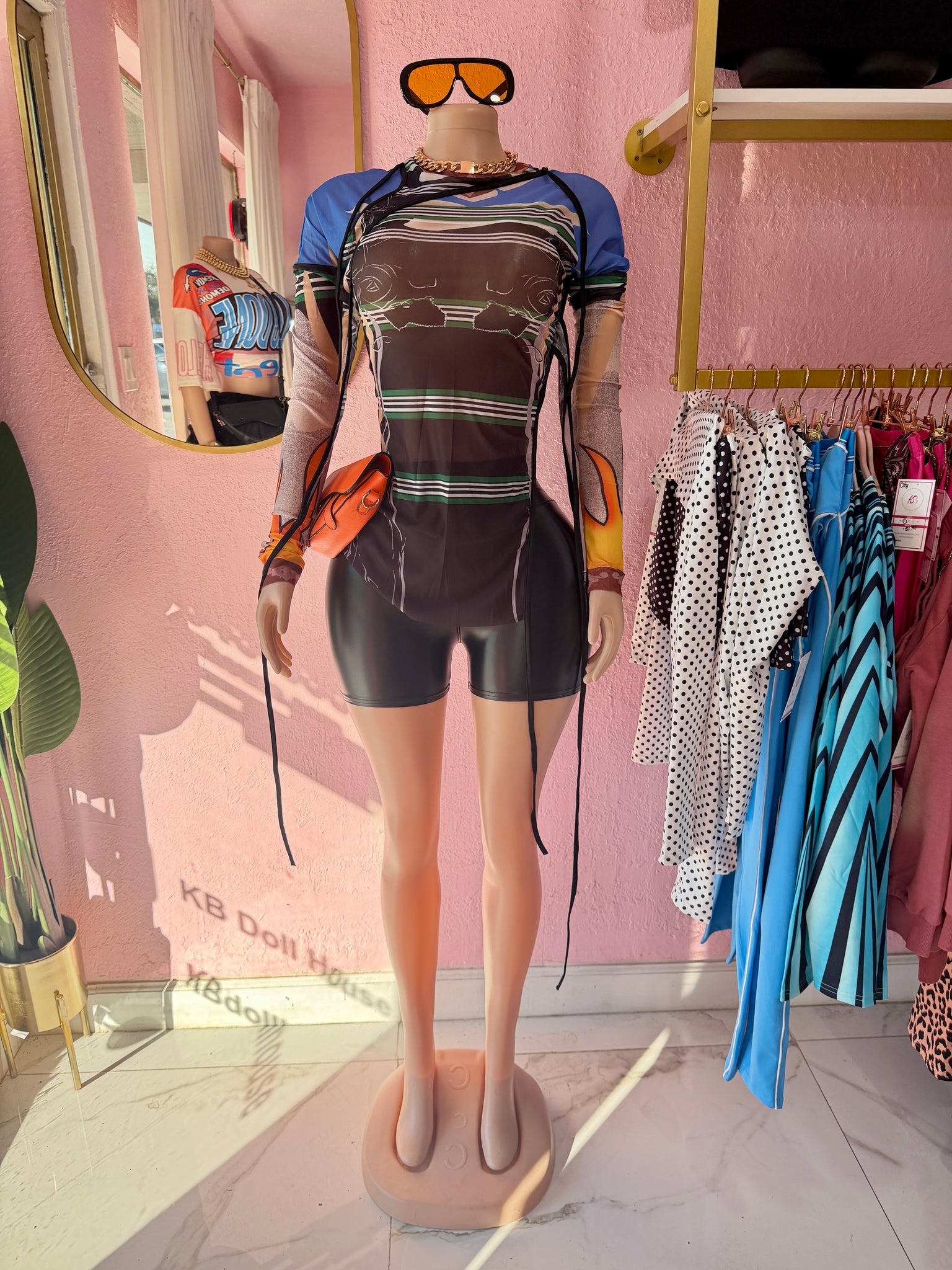 The Set It Off 🔥 Mesh Top is printed loud, fitted right, and made for the dolls who walk in and shift the whole room. Sheer mesh, body-hugging stretch, and a graphic that speaks before you do. This is that all eyes on you energy no explanation needed.